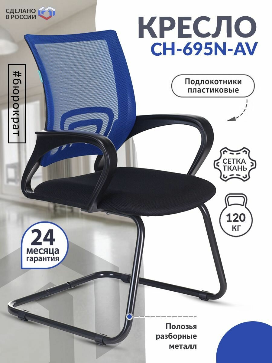 Кресло Бюрократ CH-695N-AV/BL/TW-11 на полозьях синий TW-05 сиденье черный TW-11 CH-695N-AV/BL/TW-11 .