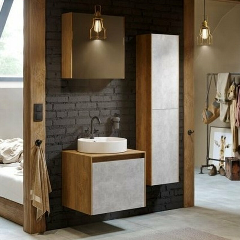 Тумба-умывальник Comforty Осло 80 бетон светлый с раковиной Fest 80
