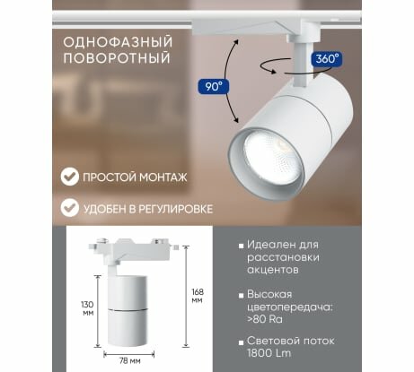 | Дополнительная информация | угол освещения 35 градусов, светильник вращается на 360º по горизонтальной оси и на 90º по вертикальной оси |