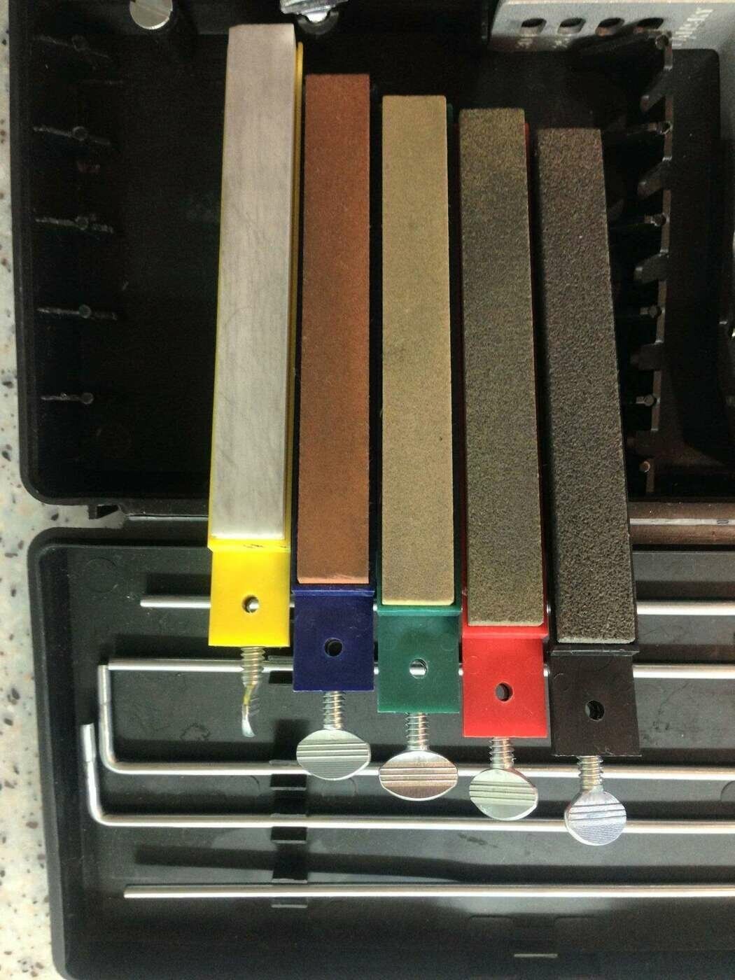 | Дополнительная информация | В комплект набора Lansky LKDMS входит: Камень Extra Coarse грубый (70 Grit) Камень Coarse грубый (120 Grit) Камень Medium средний (280 Grit) Камень Fine мелкий (600 Grit) Камень Ultra-Fine (1000 Grit) а также: зажим для клинка с фиксацией углов заточки пластиковая коробка 5 направляющих стержня специальное масло для заточки |