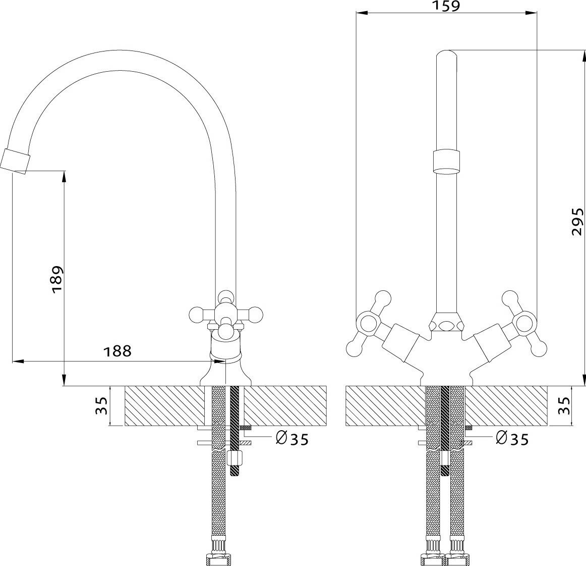 Смеситель для кухни Rossinka G02-72, двухвентильный, хром