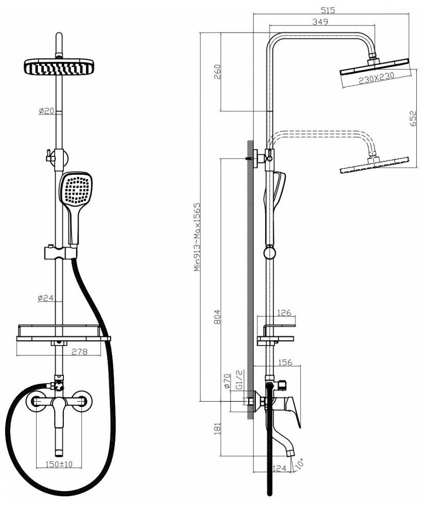 | Форма верхнего душа | квадратная |