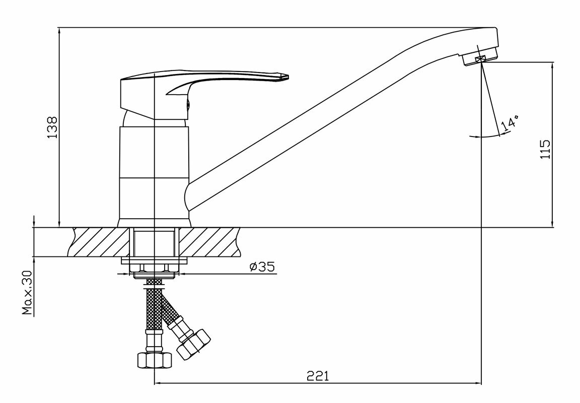 | Длина излива | 221 мм |