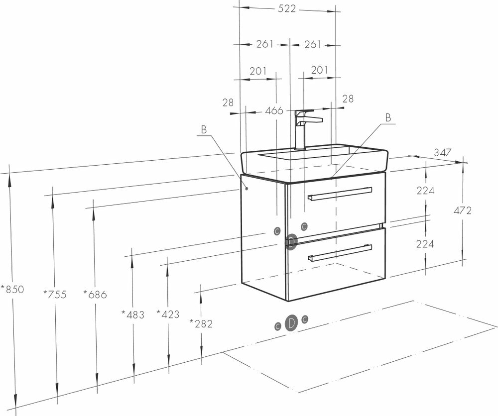 | Дополнительная информация | конструкция верхнего ящика разделена на две секции, что очень удобно для хранения мелких предметов; вместительны нижний ящик позволит спрятать более крупные вещи; раковина приобретается отдельно |