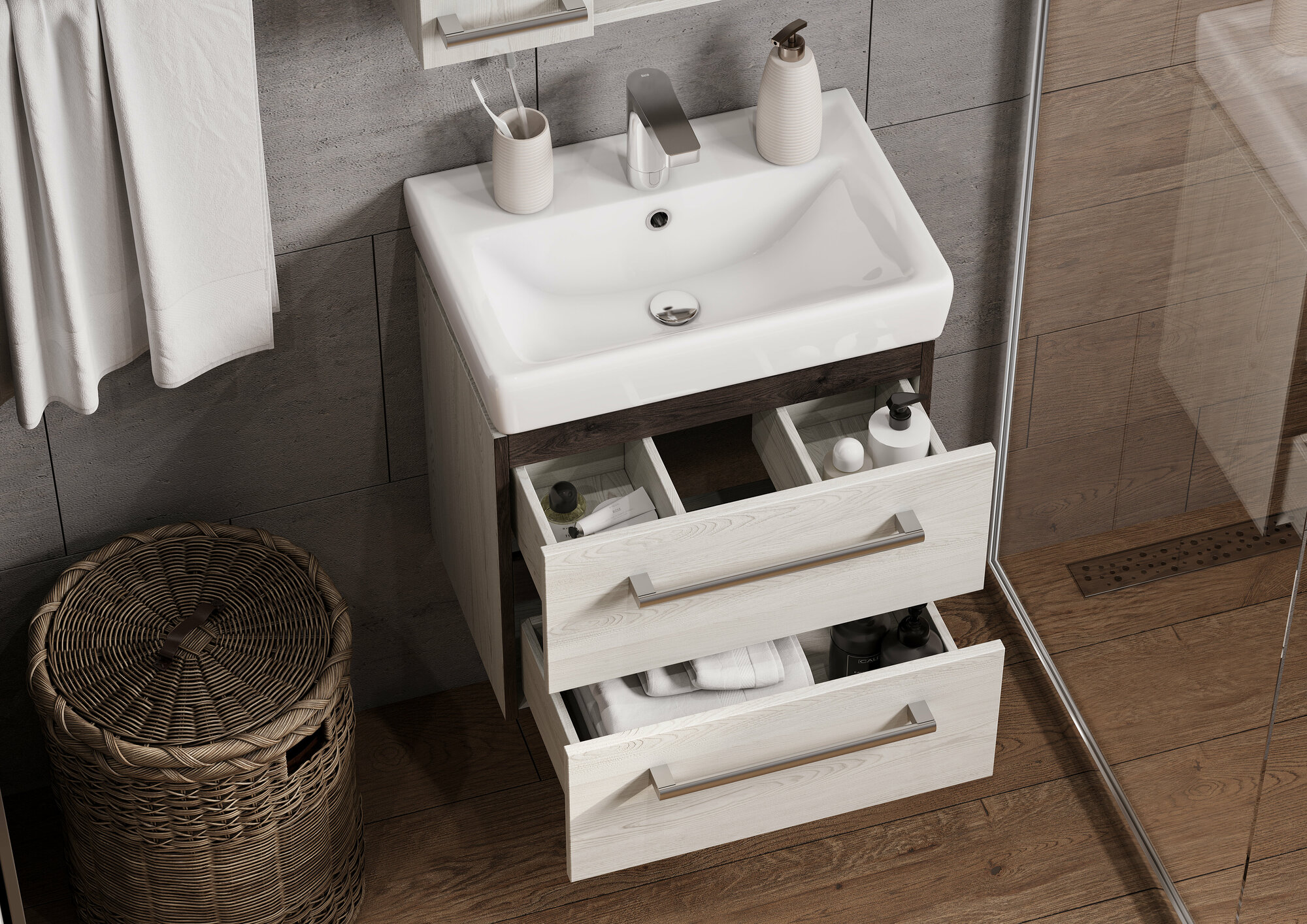 Тумба под раковину AQUATON Ронда 55 (522х347х504) подвесная, 2 ящ., дуб сомерсет/венге 1A207601RSC20