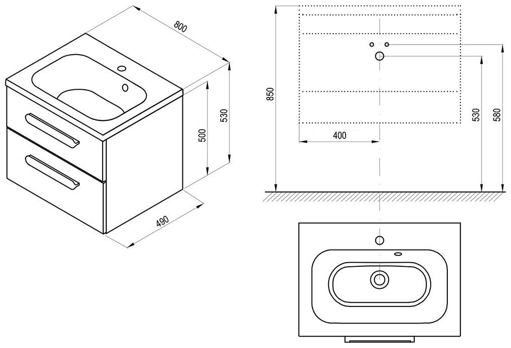 Тумба с раковиной для ванной Кристалл 50 белая.