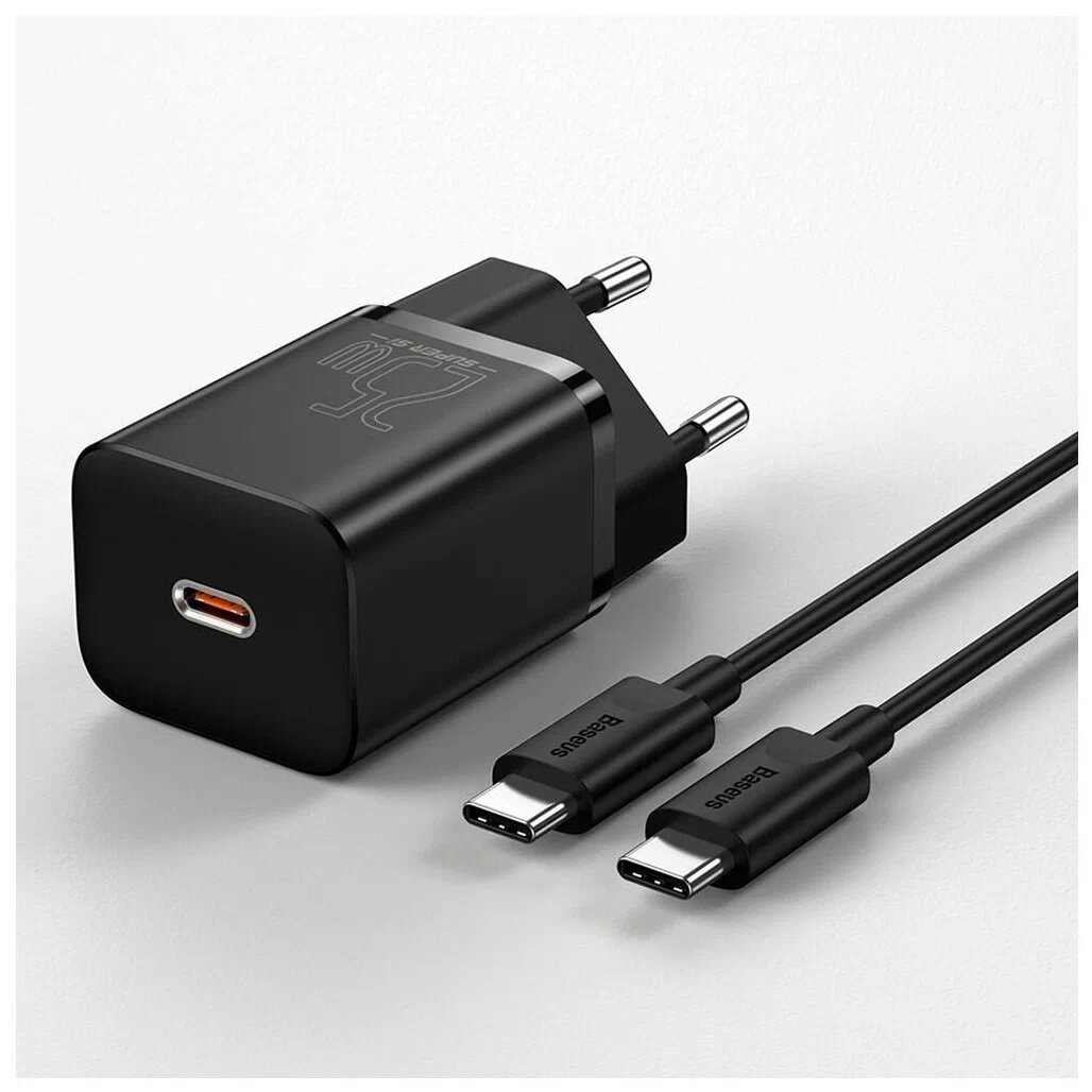 Зарядное устройство для телефона BASEUS Super Si USB-C + Кабель Type-C-Type-C, 3A, 25W, черный