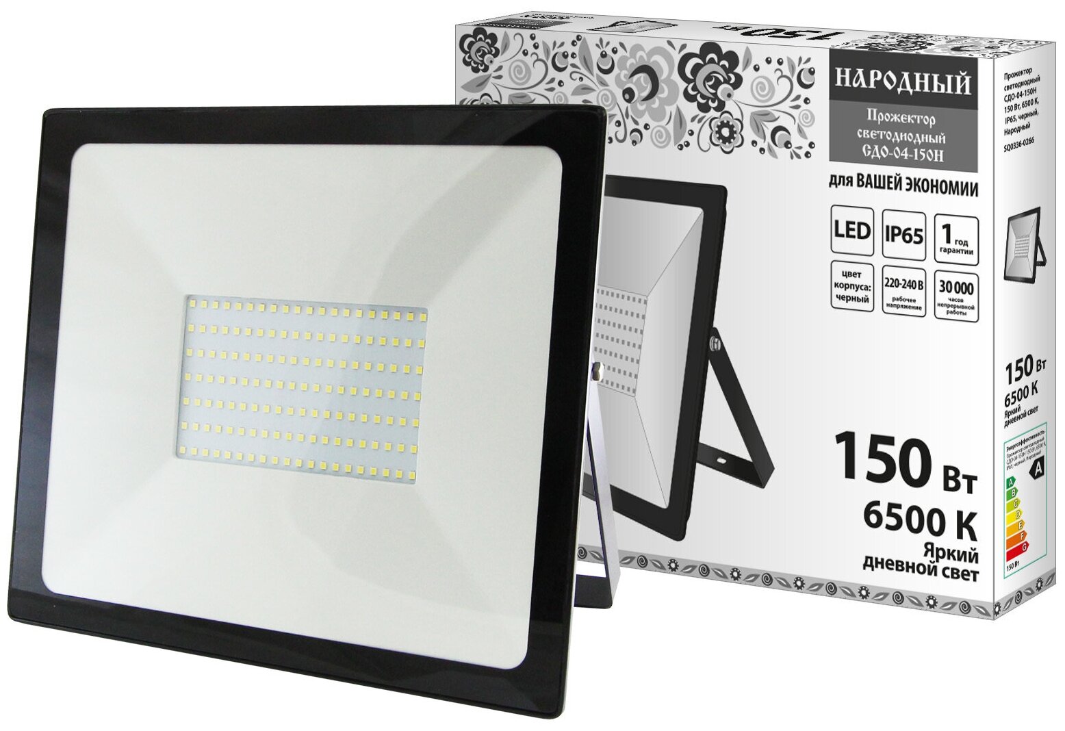 Прожектор светодиодный СДО-04-150Н 150 Вт, 6500 К, IP65, черный, Народный SQ0336-0266 (Артикул: 4100011579) интересное: