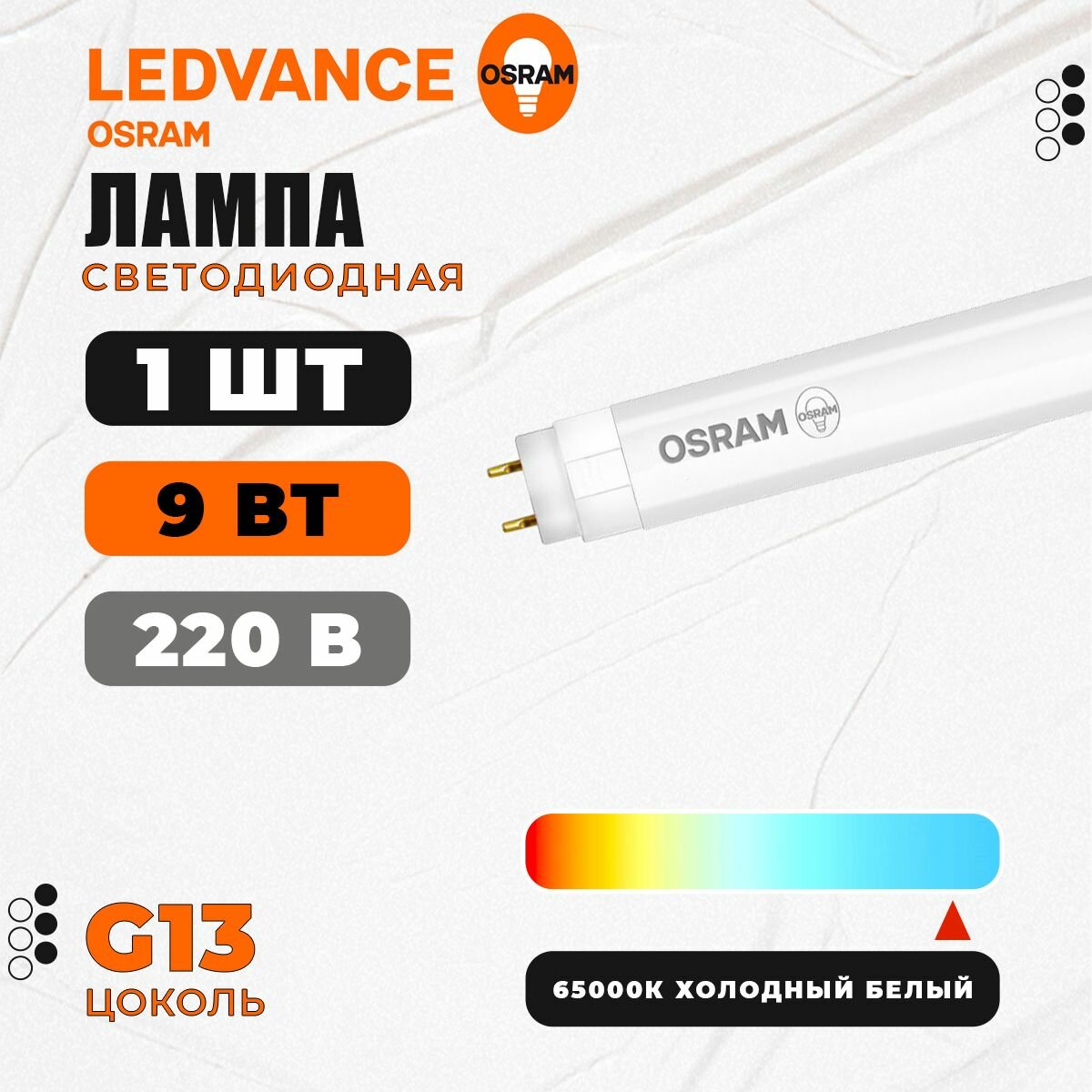 Osram Светодиодная трубчатая лампа SubstiTUBE Basic G13 9W замена 18 Вт холодный белый свет 4058075377509