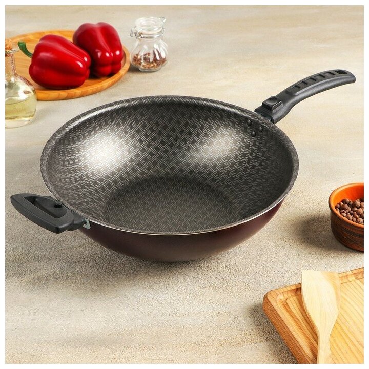 Сковорода вок, «Хозяюшка», d=28 см, съемная ручка, бордовый