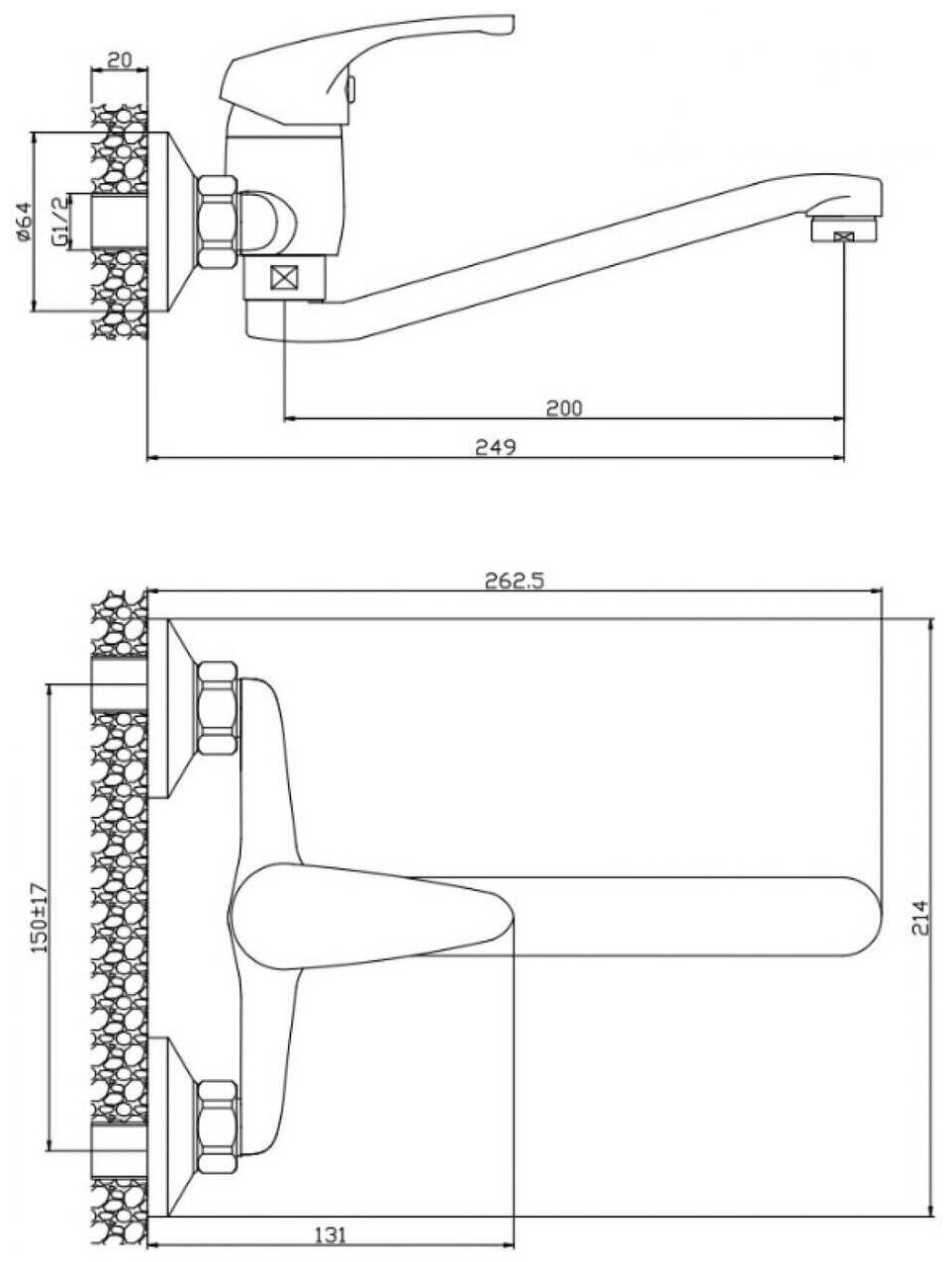 Смеситель OLIVE'S для кухни настенный AVILA (02410AV)