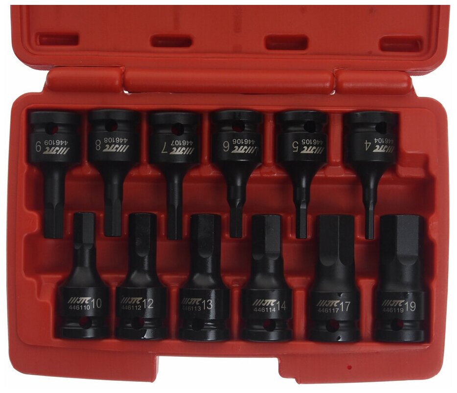 Набор головок ударных HEX 1/2"; H 4-19 мм, длина 60 мм, в кейсе 12 шт. JTC J412H