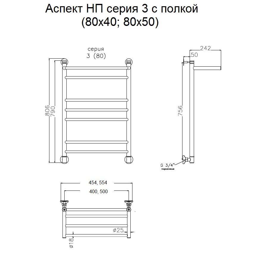 Купить Полотенцесушитель водяной Тругор Аспект НП 3 П 80x50 (ЛЦ6)