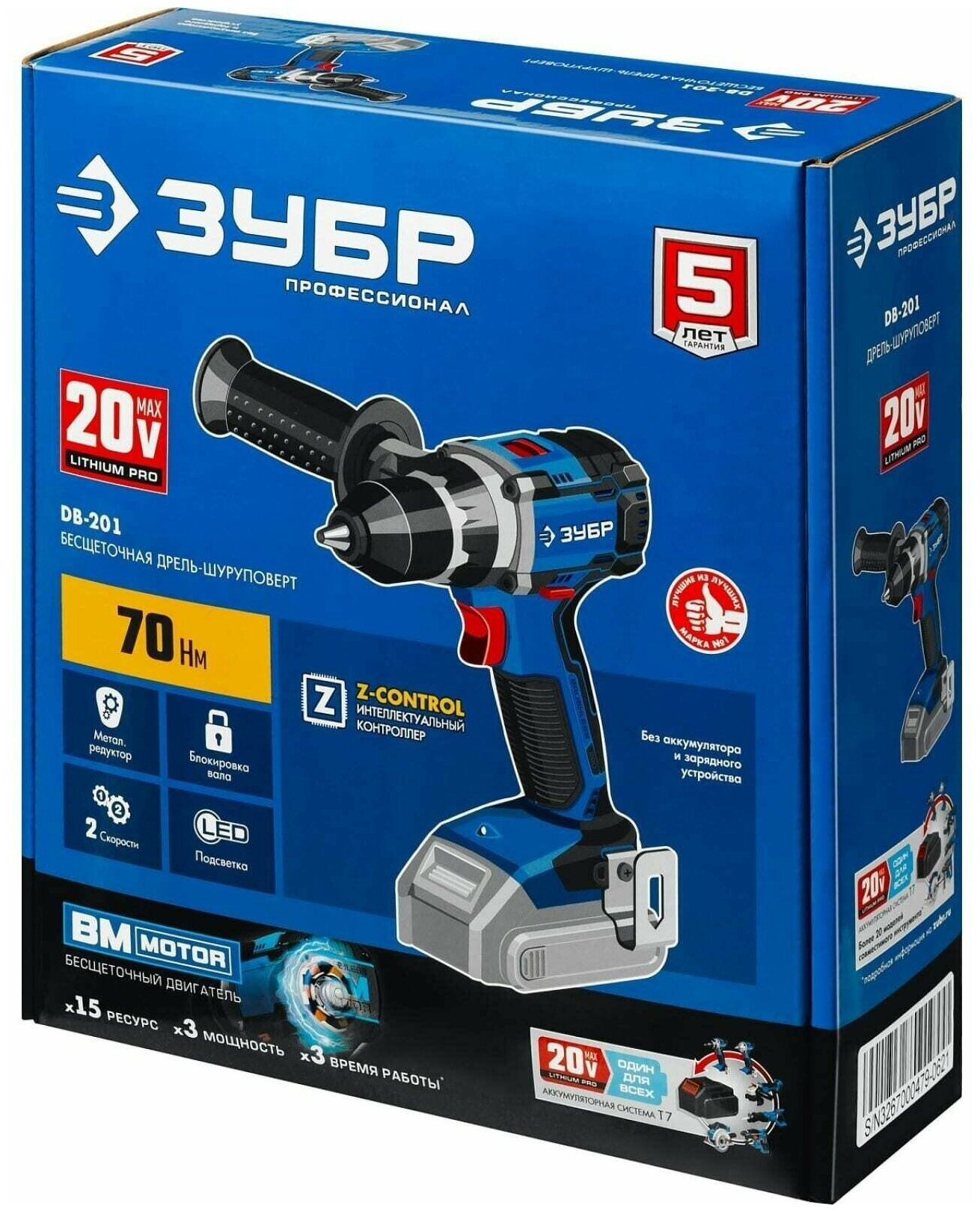 Бесщеточная дрель-шуруповерт ЗУБР DB-201 20В без АКБ, в коробке, Профессионал