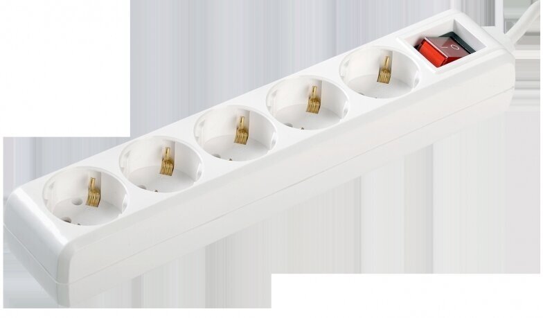 Удлинитель 5-мест. 5м 2P+E с выкл. бел. 16А (ПВС 3х1,0) ИЭК