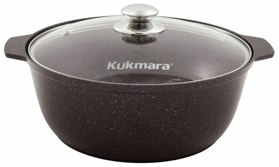 KUKMARA Кастрюля-жаровня 5л со стеклянной крышкой Тёмный мрамор (жмт528а)