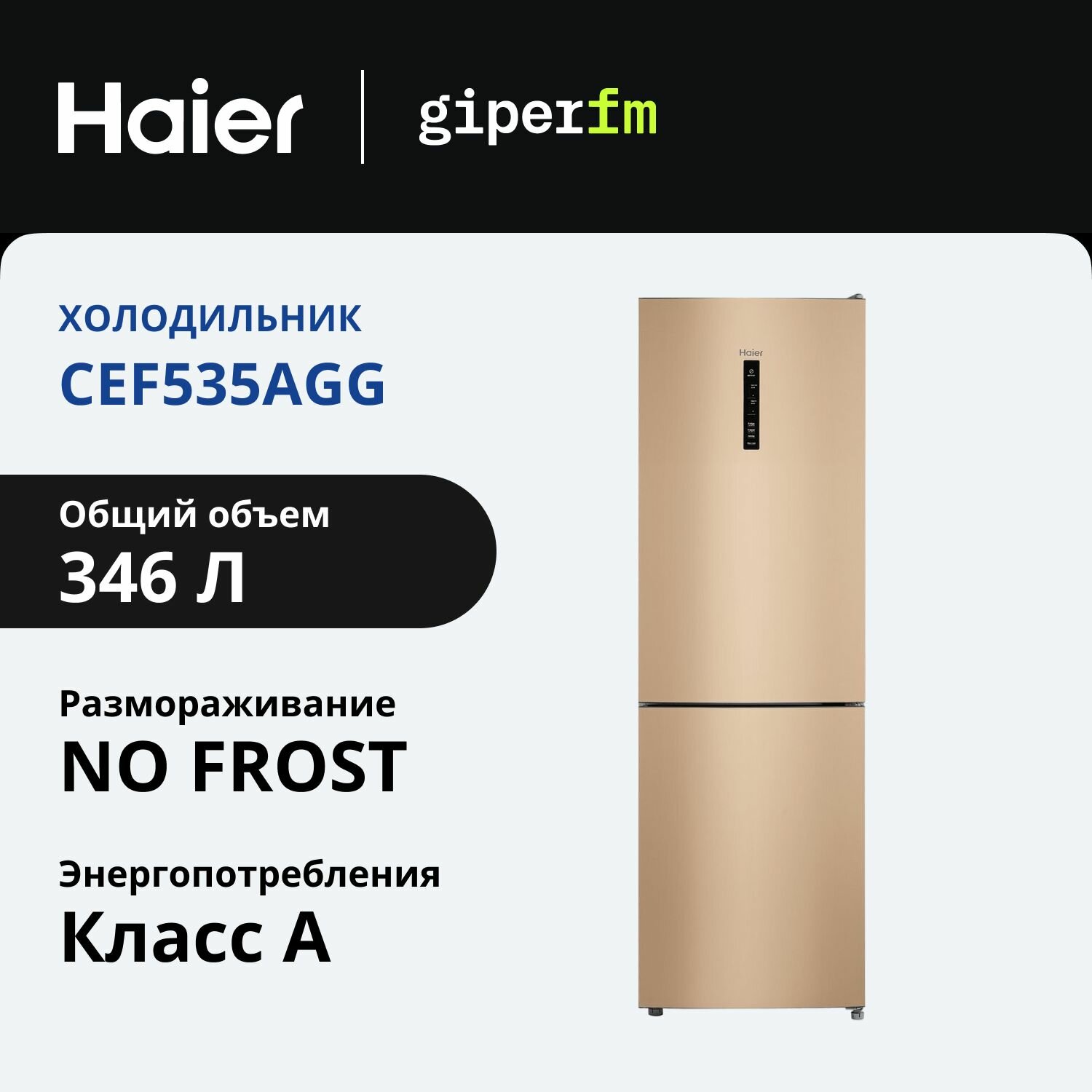 Холодильник двухкамерный Haier CEF535AGG, класс энергоэффективности A, 346 л, Total NoFrost, LED-дисплей, золотой