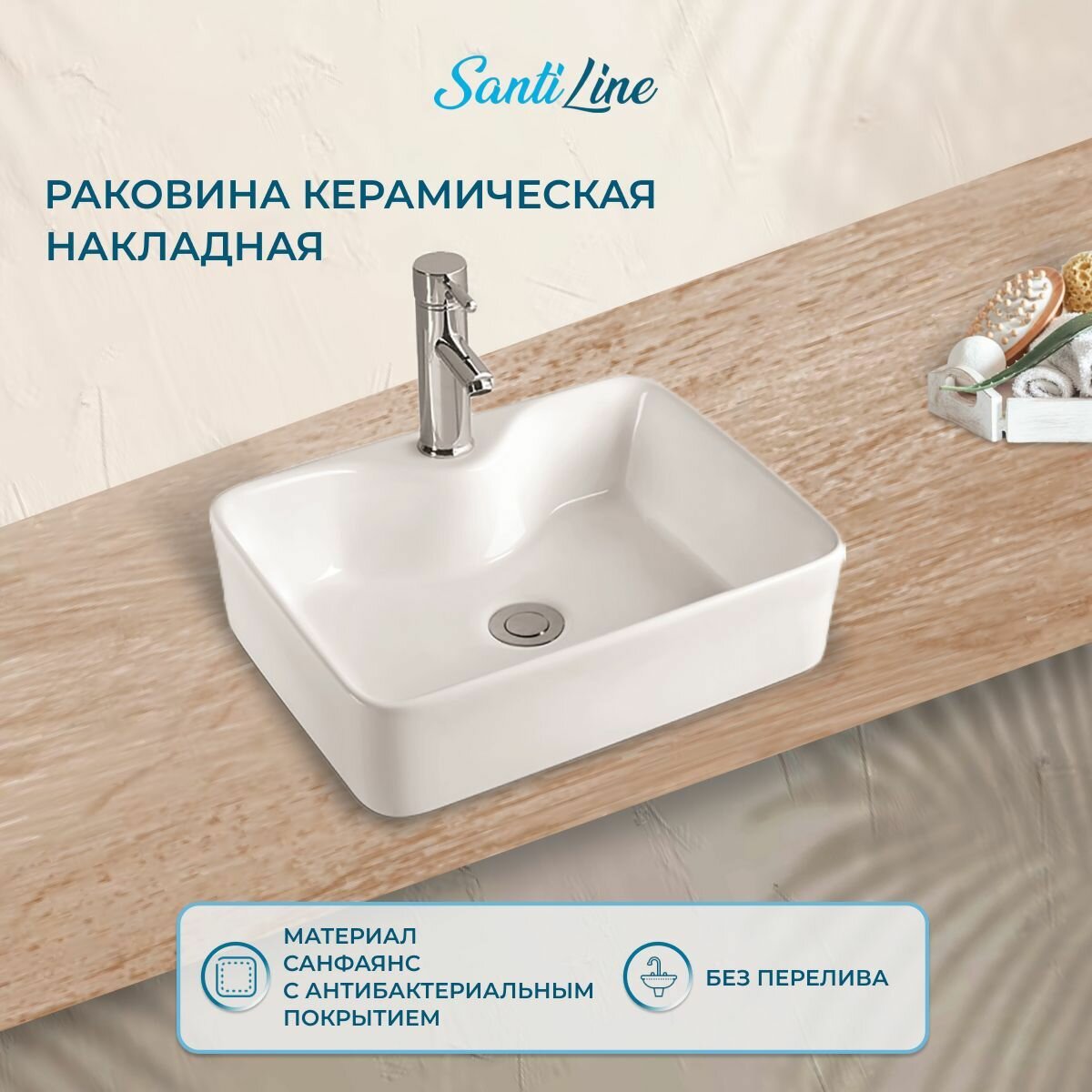 Раковина для ванной SantiLine SL-1011 керамическая, накладная.