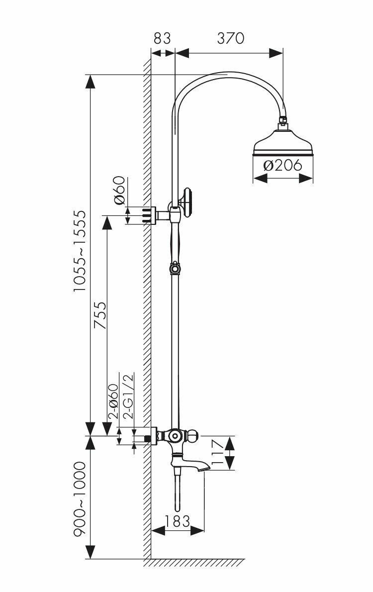 | Особенности | S-образные эксцентрики / аэратор / держатель душевой лейки / поворотный излив / регулируемый верхний душ |