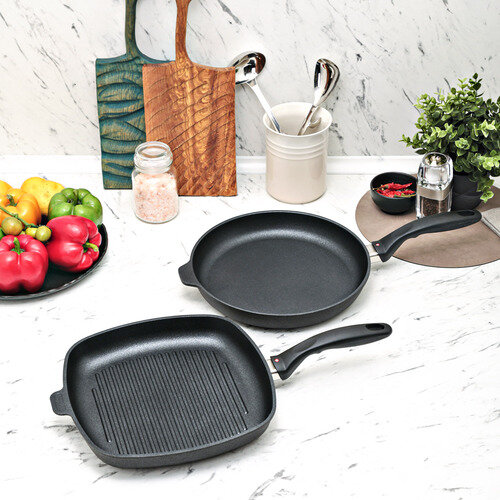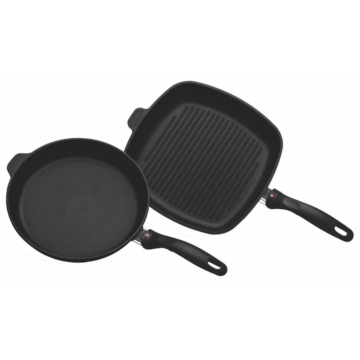 | Комплектация | сковорода 2 л (диаметр 28 см, высота 4 см, диаметр дна 22.5 см), cковорода-гриль 2.4 л (размер 28 x 28 см, высота 4 см, дно 22.5 см) |