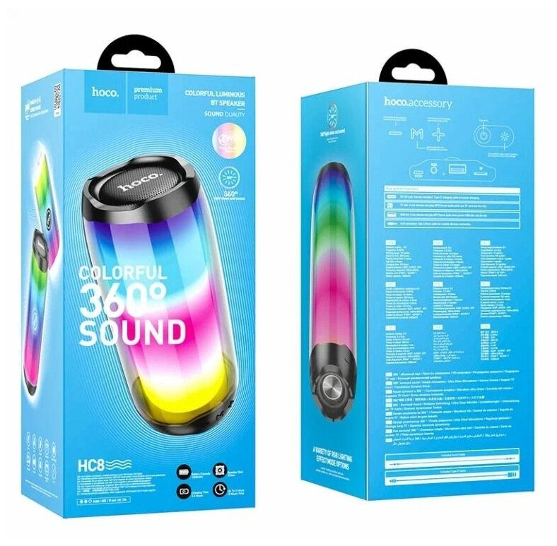 Колонка Bluetooth Hoco, HC8, Colorful 360 sound, Blue