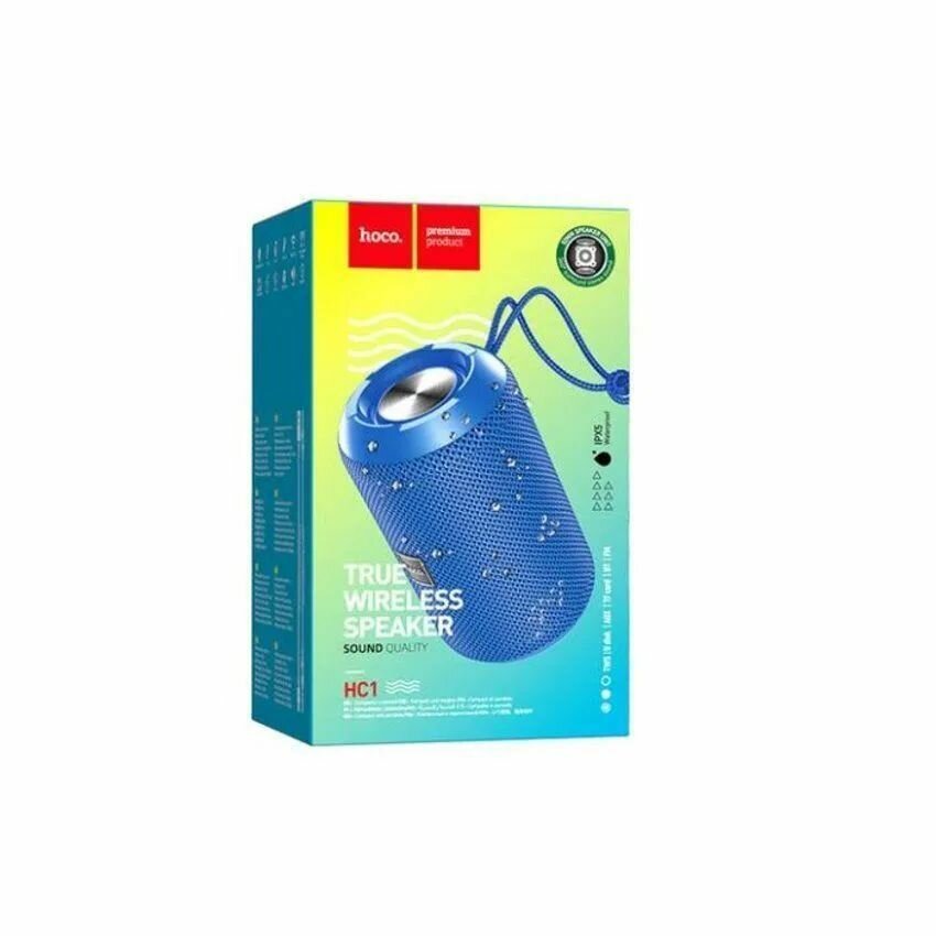 Портативная колонка Hoco HC1, 5 Вт, 1200 мАч, BT5.0, microSD, USB, AUX, FM-радио, синяя