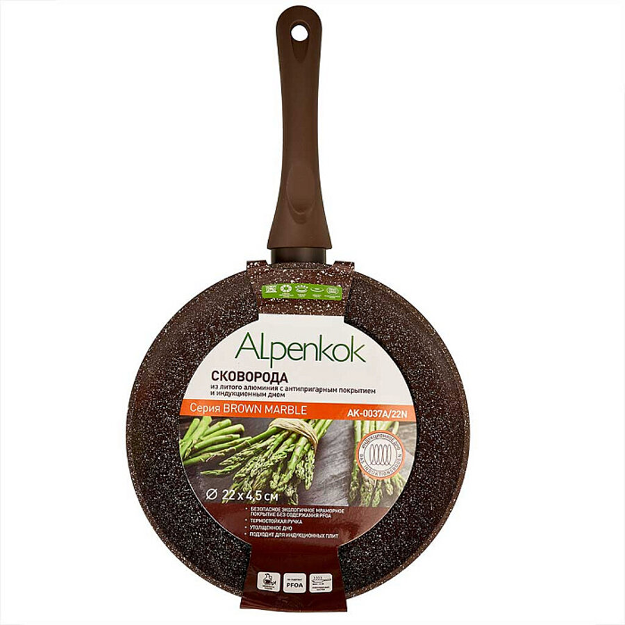Сковорода алюм. Alpenkok Ak-0037a/22n с антипригарным покрытием "brown Marble" d=22см