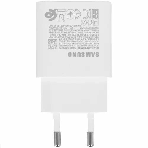 Блок питания Samsung 25W PD Power Adapter USB-C/ Сетевой адаптер Самсунг 25вт ЮЗБ тайп -с, белый, модель EP-TA800