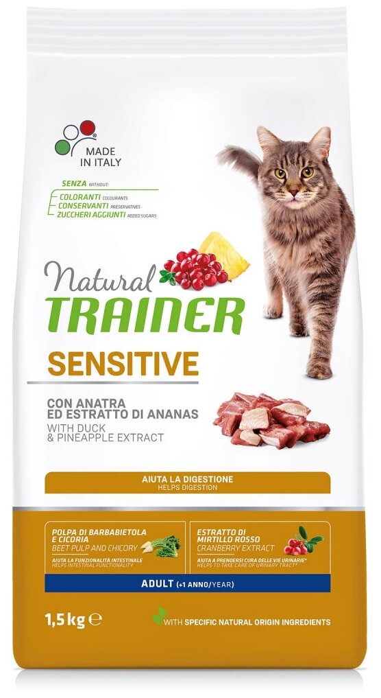 Сухой корм TRAINER NATURAL ADULT CAT SENSITIVE WITH DUCK монобелковый для взрослых кошек при аллергии с уткой (1,5 кг)