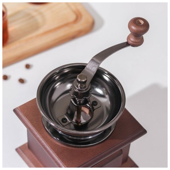 Кофемолка ручная "Василиса", измельчитель для кофейных зерен, тёмное дерево, размер 11,5х11,5х16,5 см интересное: