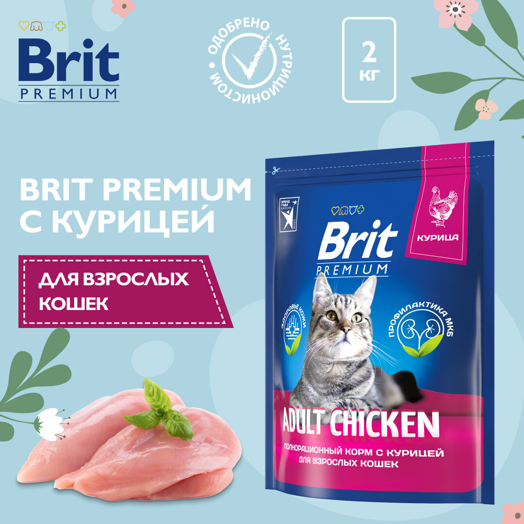 Купить Сухой корм BRIT PREMIUM CAT ADULT CHICKEN для взрослых кошек с курицей (2 кг)
