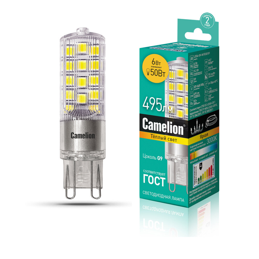 Ниже Вы можете прочитать отзывы на Лампа светодиодная Camelion LED6-G9-NF/830/G9, G9, 6Вт, 3000 К, ознакомится с подробными характеристиками, посмотреть интересные обзоры и фотографии на Лампа светодиодная Camelion LED6-G9-NF/830/G9, G9, 6Вт, 3000 К.
