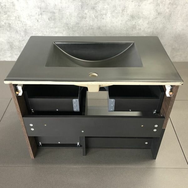 Comforty Тумба с раковиной Франкфурт 75 00-00000889 подвесная Дуб шоколадно-коричневый Черная матовая