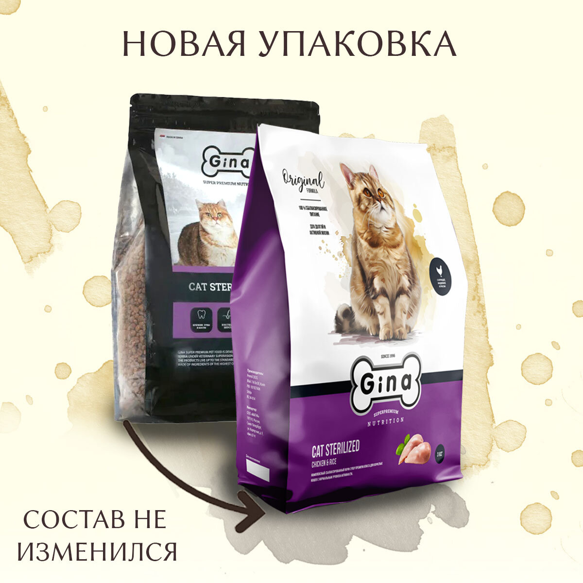 GINA CAT STERILIZED CHICKEN & RICE для взрослых кастрированных котов и стерилизованных кошек с курицей и рисом 01739 (1 кг)