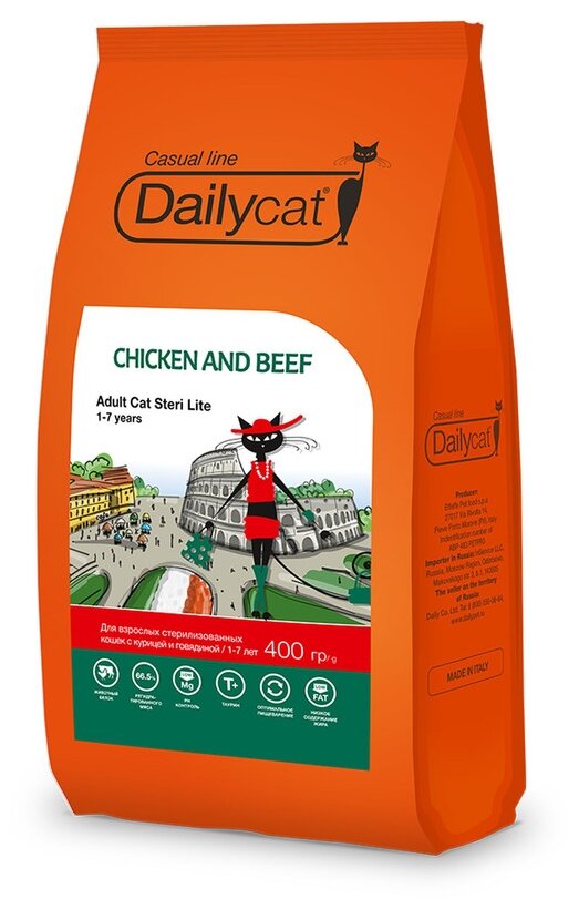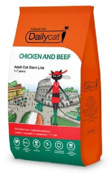 Купить Dailyсat Casual Line Adult Steri Lite Сухой корм для стерилизованных кошек с курицей и говядиной, 400г
