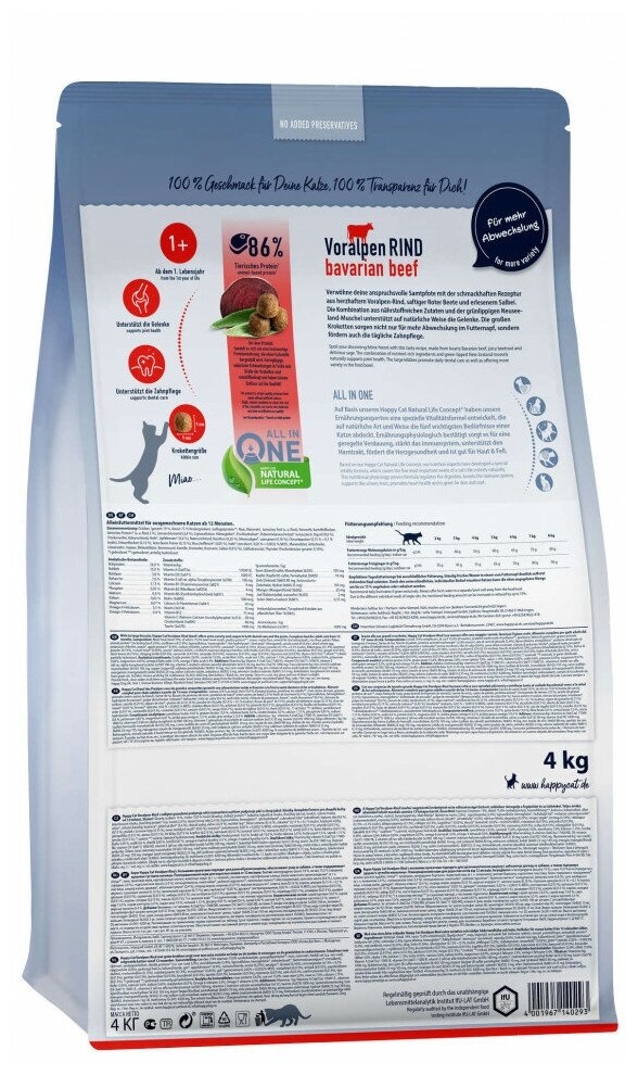 Сухой корм для кошек Happy Cat Supreme, с альпийской говядиной 4 кг
