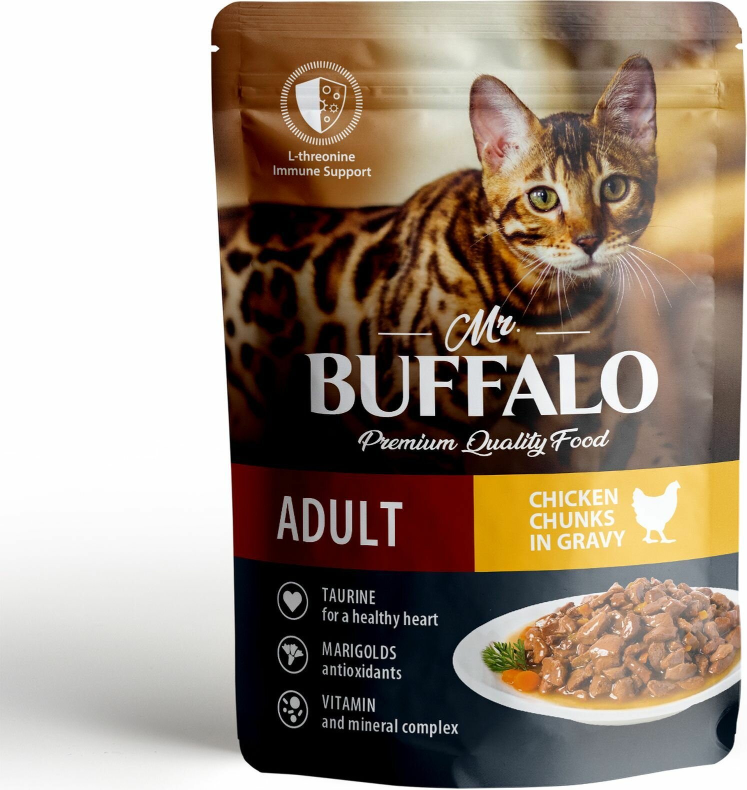 Mr.Buffalo Adult влажный корм для взрослых кошек с цыпленком в соусе, в паучах - 85 г х 28 шт