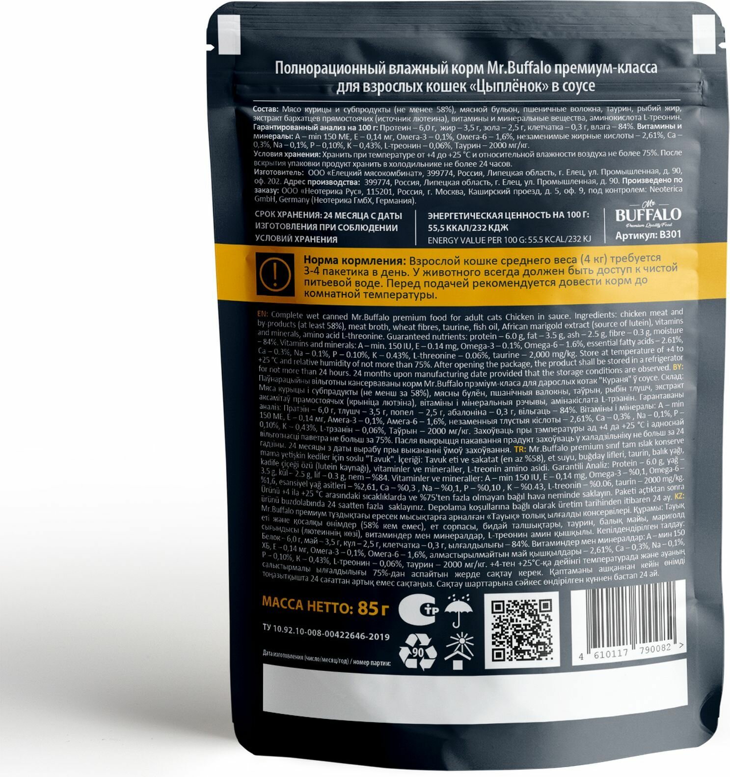 Купить Влажный корм Mr.Buffalo ADULT 85г (цыпленок в соусе) для кошек, 1 упаковка 28 шт