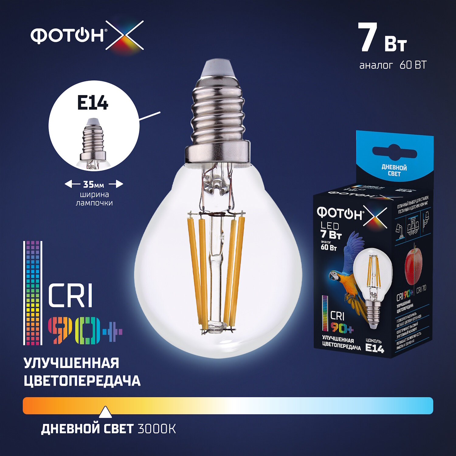 Фотон Лампа светодиодная LED FL P45-C 7W E14 4000K, серия Х 24001 интересное: