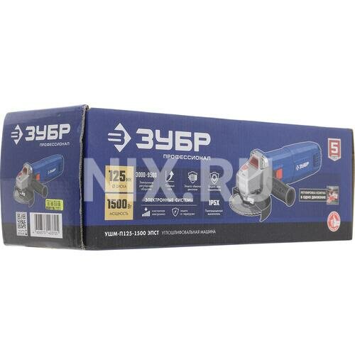 Купить УШМ ЗУБР УШМ-П125-1500 ЭПСТ, 125 мм синий