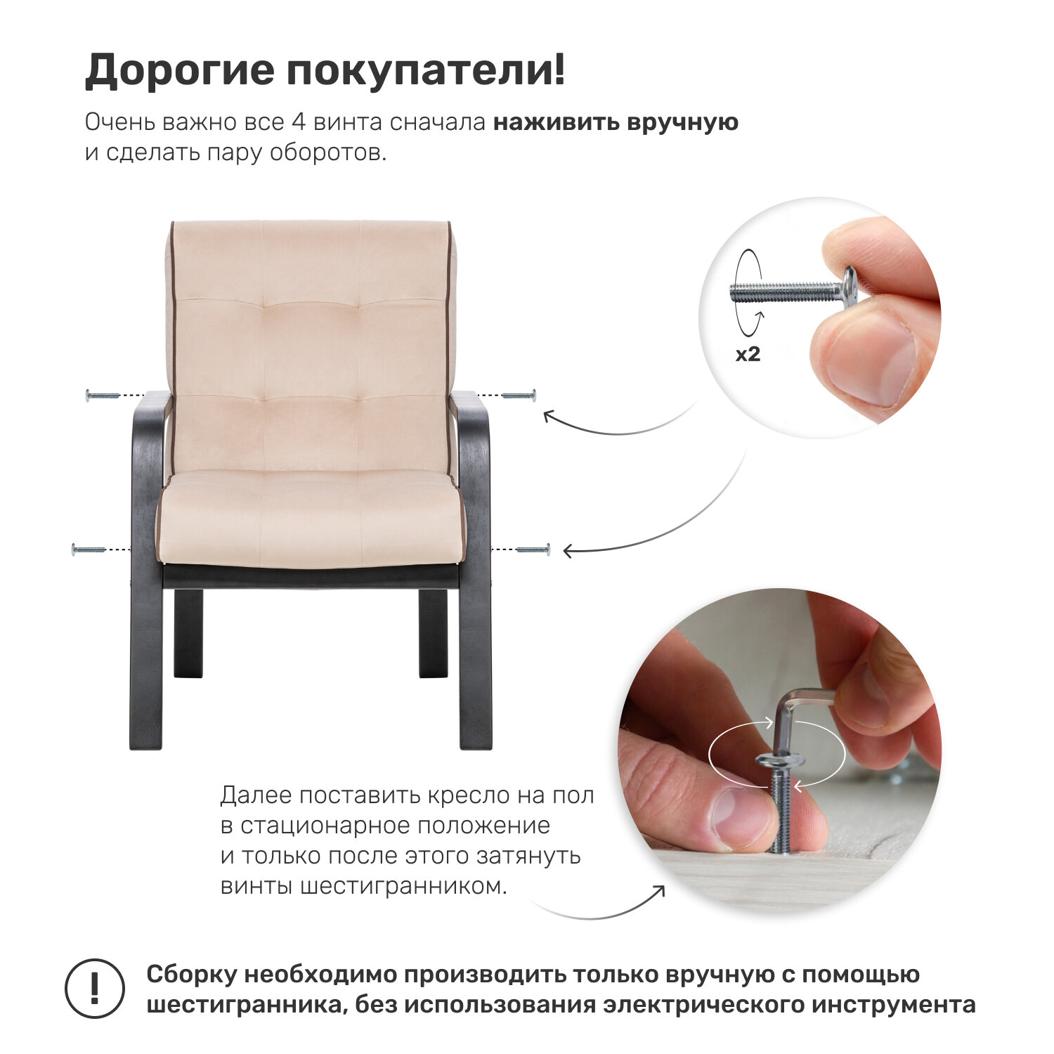 | Отзыв: | Собирается очень легко, за 20 мин. Самое кресло очень удобное, впишется в любой интерьер. Ткань мягкая, приятная, деревянные изделия без дефектов. Всё супер |