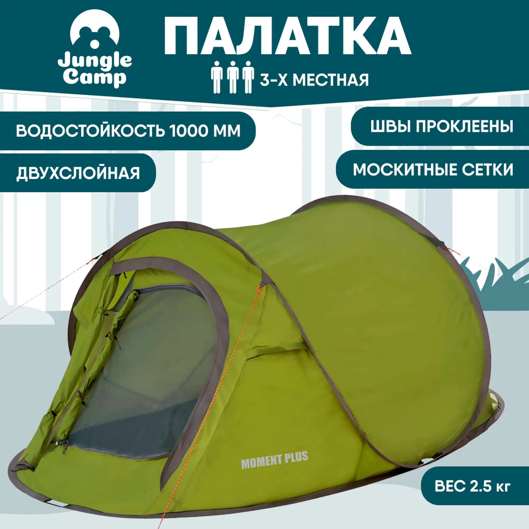 Палатка двухместная JUNGLE CAMP Moment Plus 3, цвет: зеленый