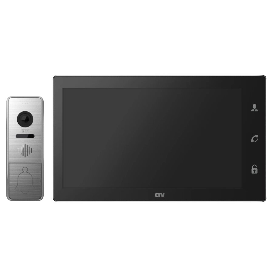 CTV-DP4106AHD (Черный) Комплект видеодомофона для квартиры, поддержка Full HD, Сенсорный IPS дисплей 10" 1024x600, угол обзора 115 градусов, с записью видео по детекции движения, автоответчик, HOOK