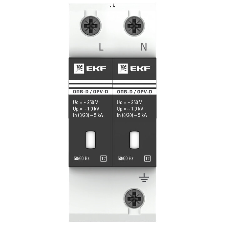 EKF Ограничитель импульсных напряжений серии ОПВ-D/2P In 5кА 230В EKF opv-d2