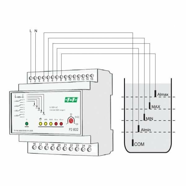 Реле контроля уровня жидкости PZ-832, четырехуровневое, с зондами, F&F