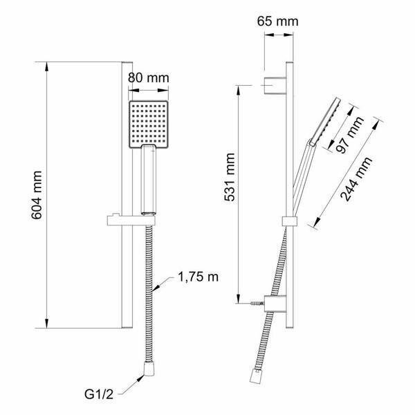 | Комплектация | держатель лейки / лейка / ручной душ / шланг / инструкция / многопозиционный кронштейн / набор креплений / штанга |