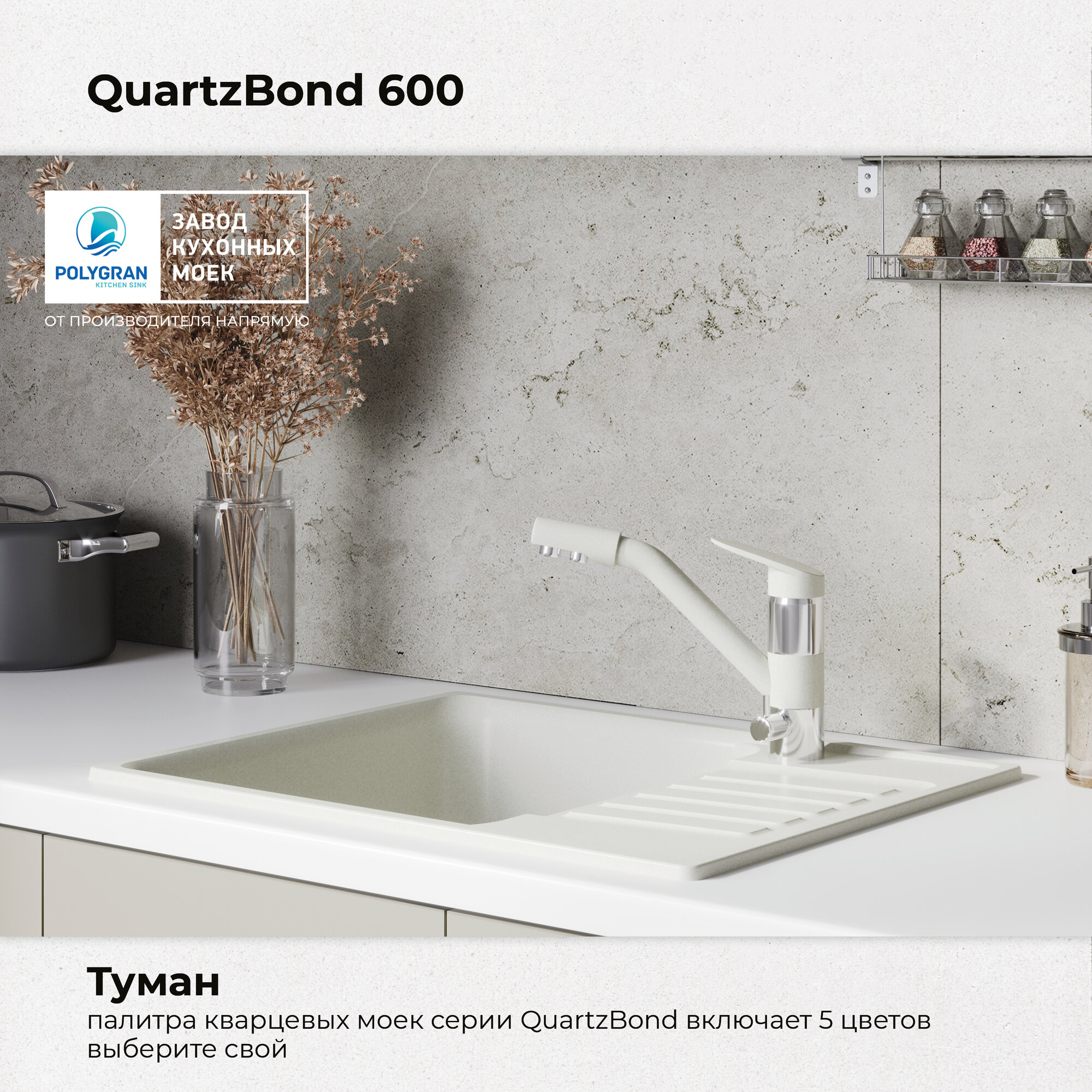 СохранитьКухонная мойка из искусственного камня QUARTZBOND BOND-600 Кварц (Туман) интересное: