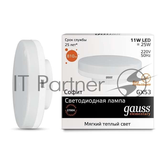 Лампа светодиодная Elementary GX53 11Вт 3000К 1/10/100 Gauss GAUSS 83811 (1 шт.)