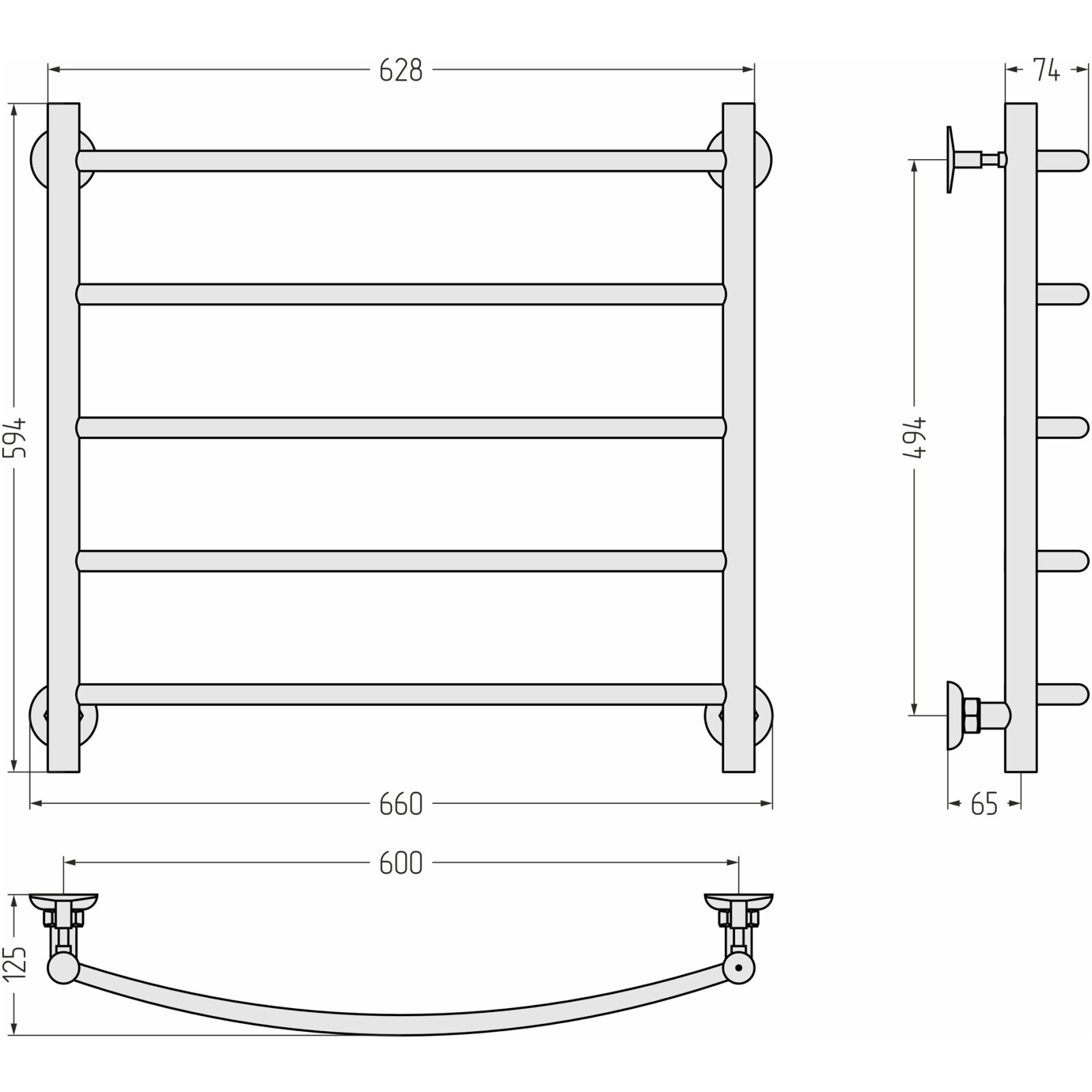 Полотенцесушитель водяной стилье "Версия-Н2" 600х600 (5) Г 18 / черный