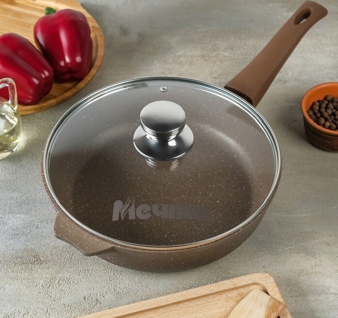 Сковорода Мечта 26 см Гранит с антипригарным покрытием с несъемной ручкой и крышкой, НЕ индукционная
